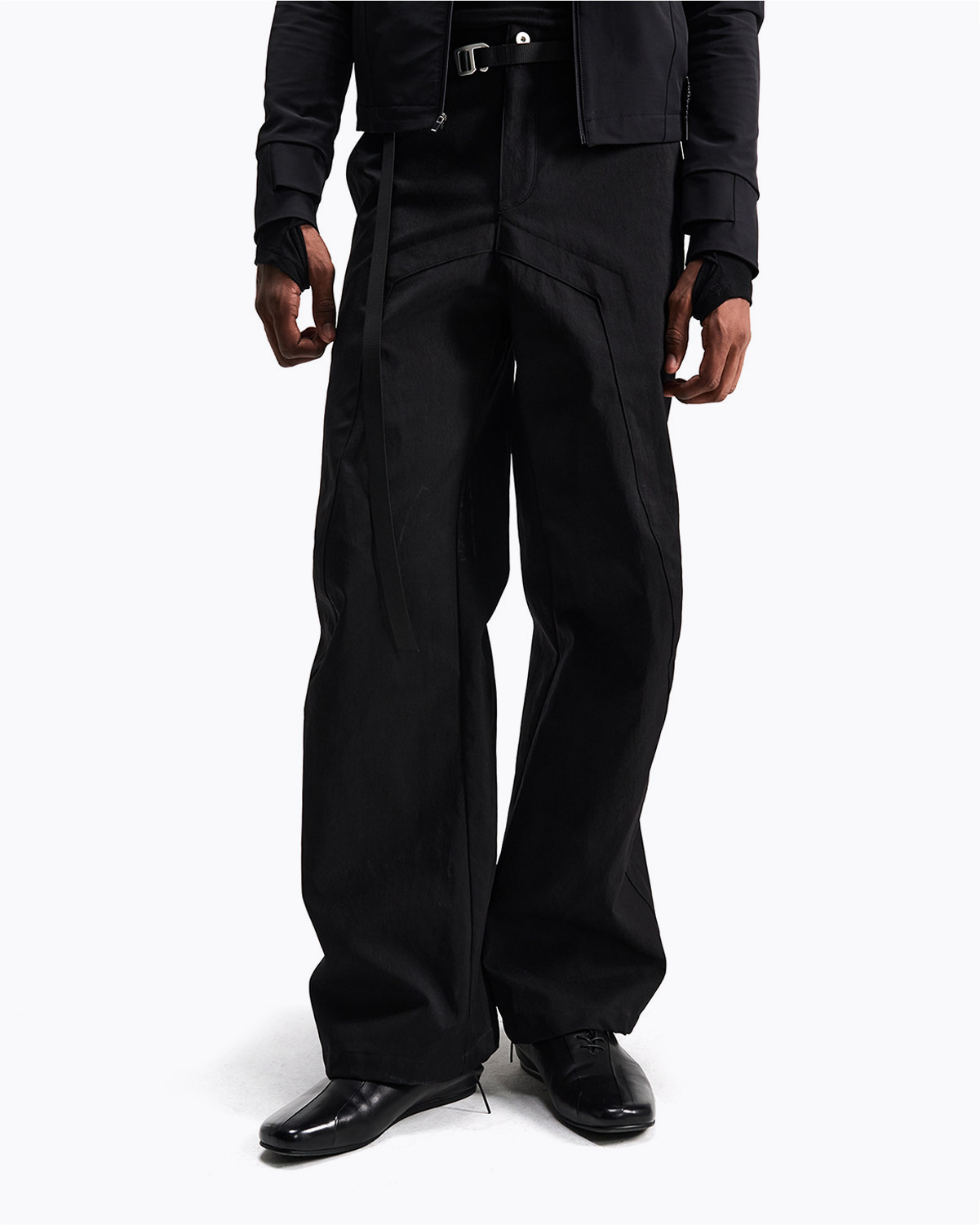 Made from high-density nylon with a smooth drape and subtle technical character.